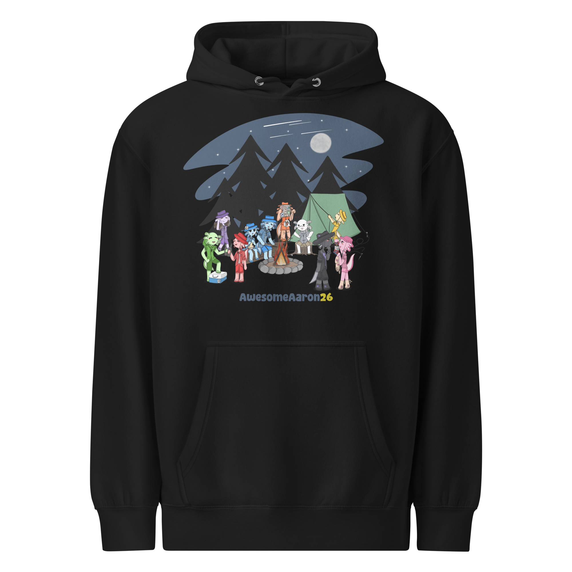 This is a very nice sweater. I really enjoy how comfy it is and how soft the inside feels. This has a very nice high quality feel to it which I really like and I love the art. The axolotls at a campout is awesome and cute. Thank you Aaron I really like your hoodie!